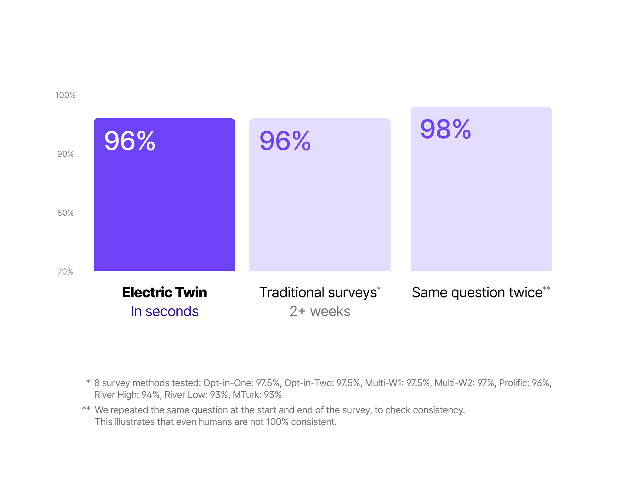 We've tested against millions of responses in real world data. We already achieve the same accuracy as traditional research.